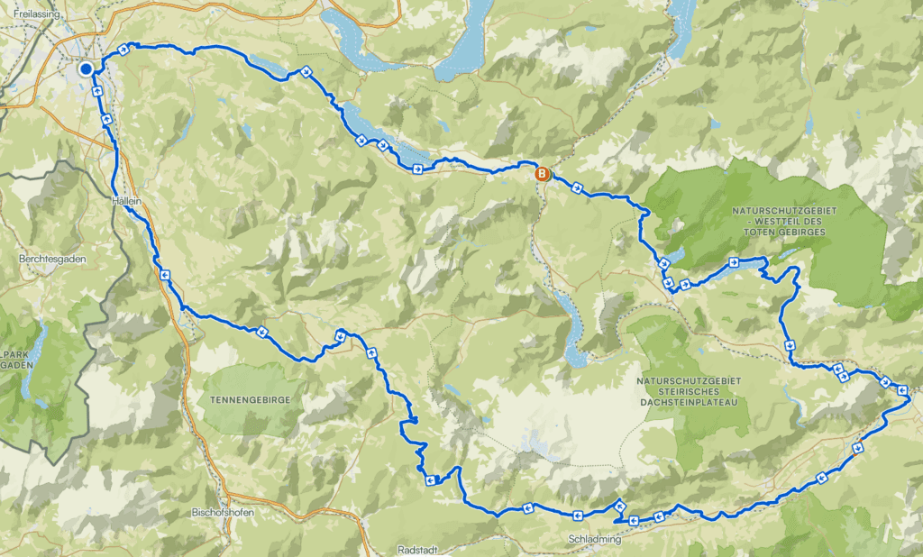 For the shorter route, the gravel begins already in Golling and leads directly back to Salzburg.
